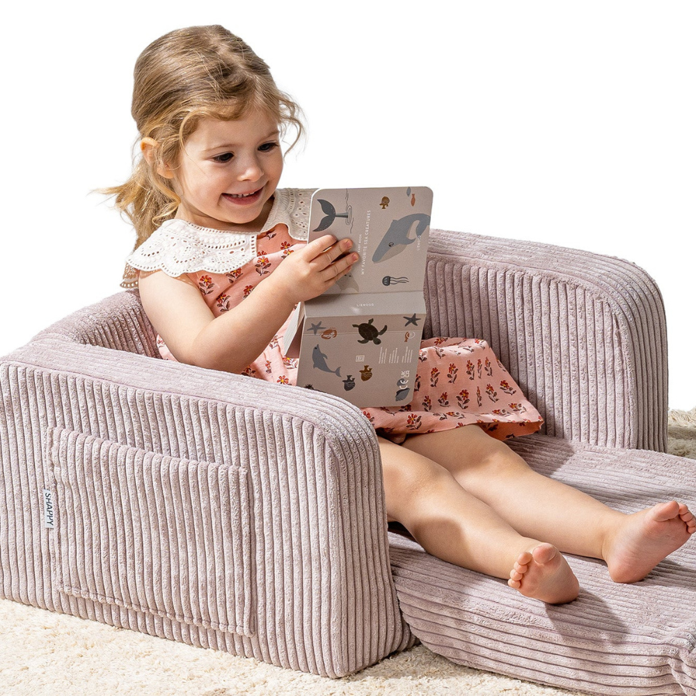 Pehme, kuid mõnusalt toekas tugitool, on täiuslik koht puhkamiseks, lugemiseks ja mängimiseks. Kaetud ilusa velvetkangaga ja saad tugitooli isegi lahti voltida väikeseks voodiks või mängumatiks.