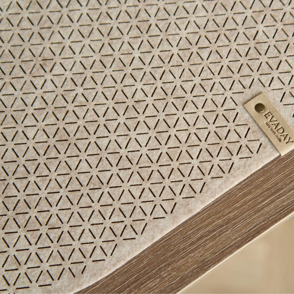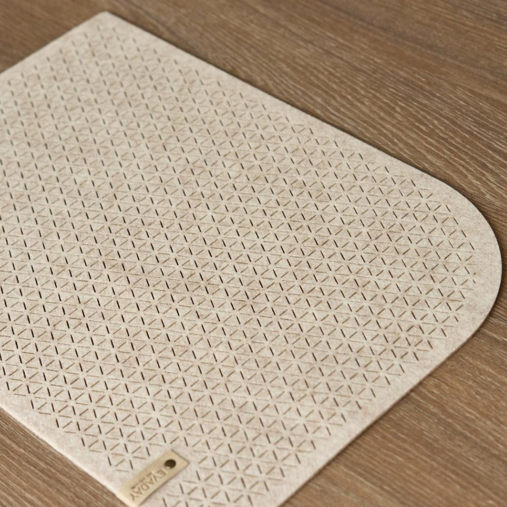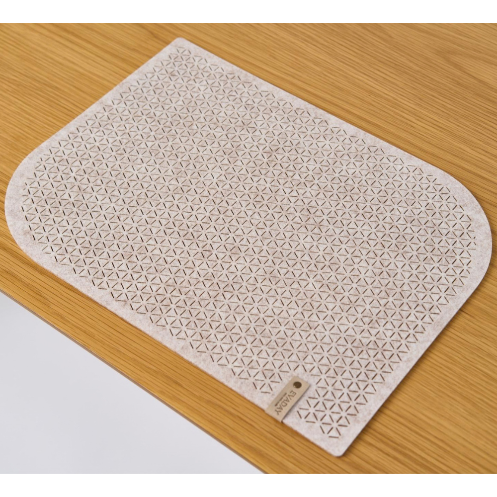 Stiilne beež vildist lauamatt põneva sümmeetria ja peene mustriga. Praktiline ja silmapaistev komponent laua katmisel.
